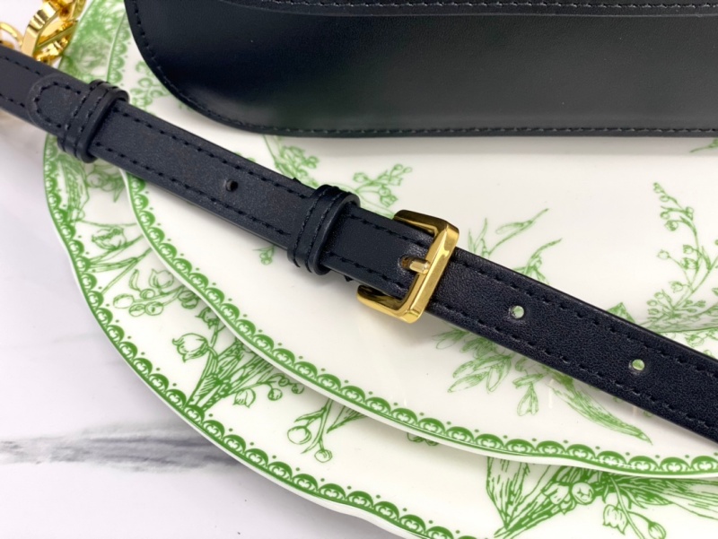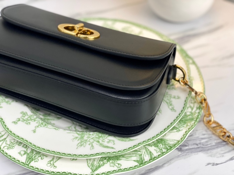 - 结构:翻盖开合 CD 扣环 背面 30 Montaigne 压花标志 可调节肩带,链条部分由金色饰面金属和与皮革同色调的珐琅 CD 链环组成,搭配皮革带 三隔层 内含防尘袋