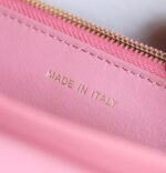 - 结构:旋钮式 CD 扣环 2 个主隔层 1 个拉链隔层 3 个卡槽 1 个外部贴袋 可调节肩带,链条部分由金色饰面金属和与皮革同色调的珐琅 CD 链环组成,搭配皮革带