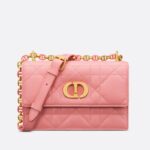 - S5169 迪奥Dior Miss Caro 迷你链条手袋 羊皮革超大藤格纹 粉色