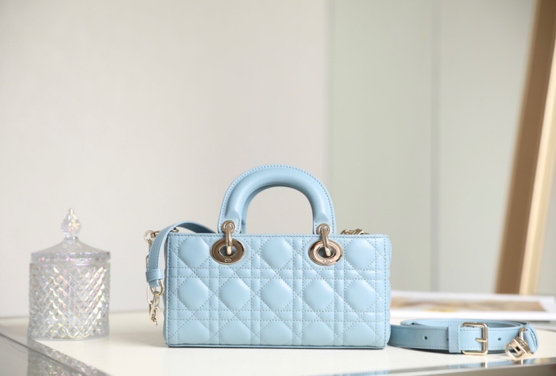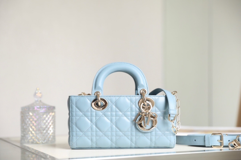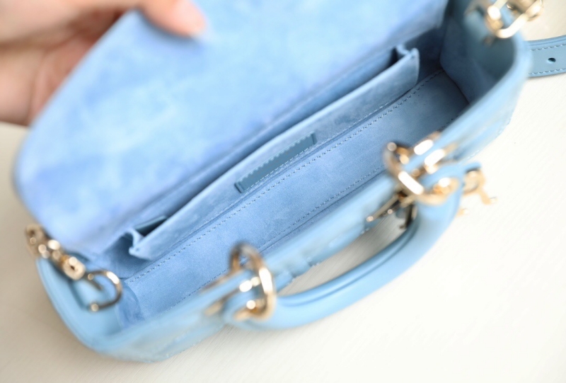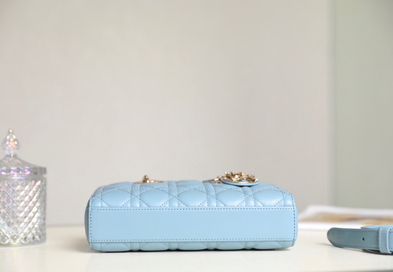 - M0613 迪奥Dior Lady D-Joy 小号手袋横版戴妃包 羊皮革藤格纹 蓝色