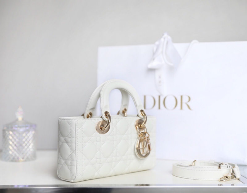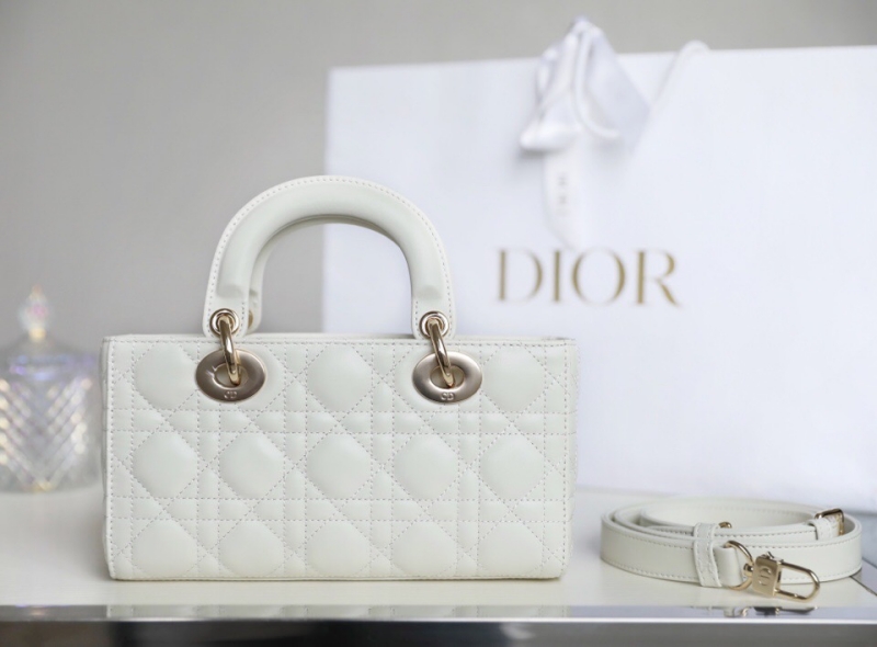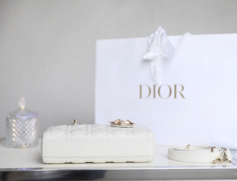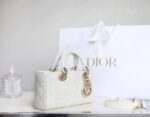 - M0613 迪奥Dior Lady D-Joy 小号手袋横版戴妃包 羊皮革藤格纹 奶白色
