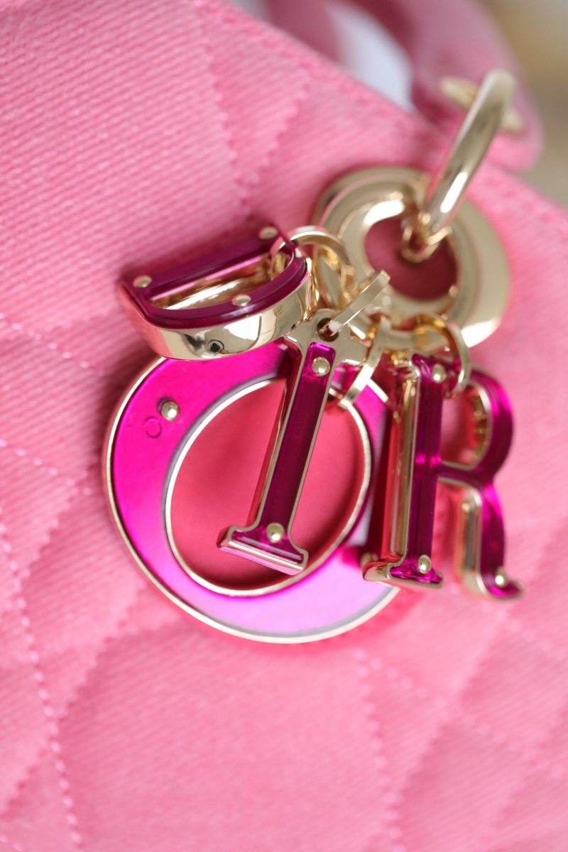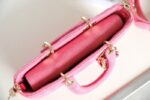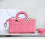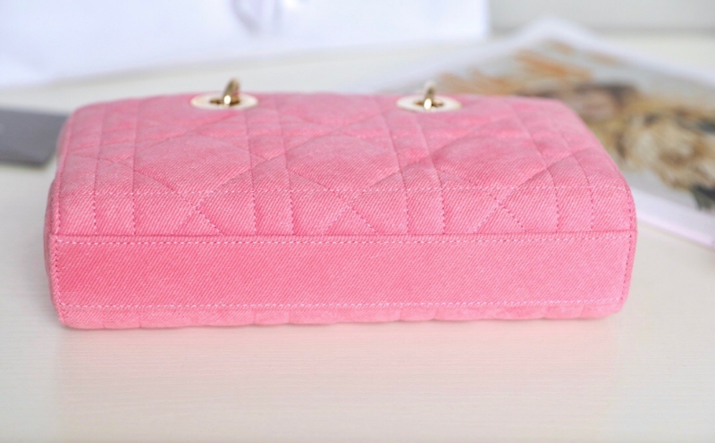 - M0613 迪奥Dior Lady D-Joy 小号手袋横版戴妃包 牛仔面料超大藤格纹 粉色