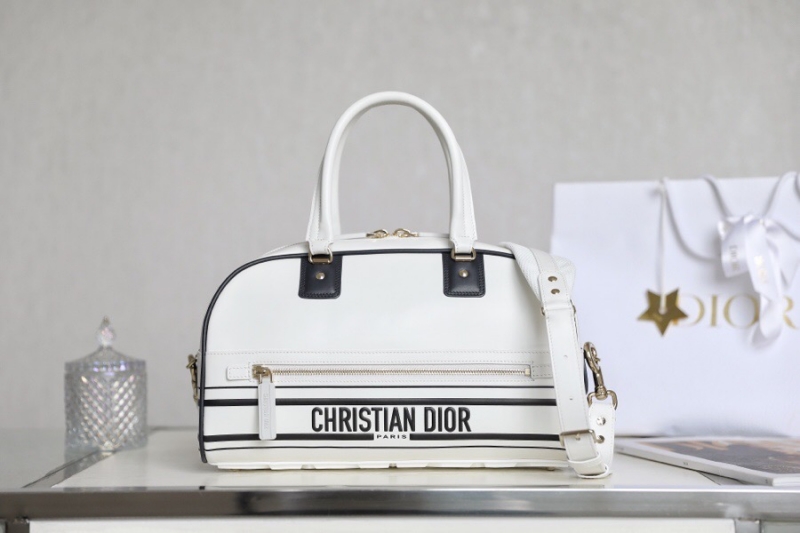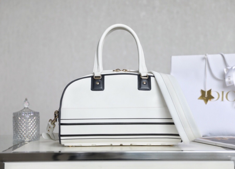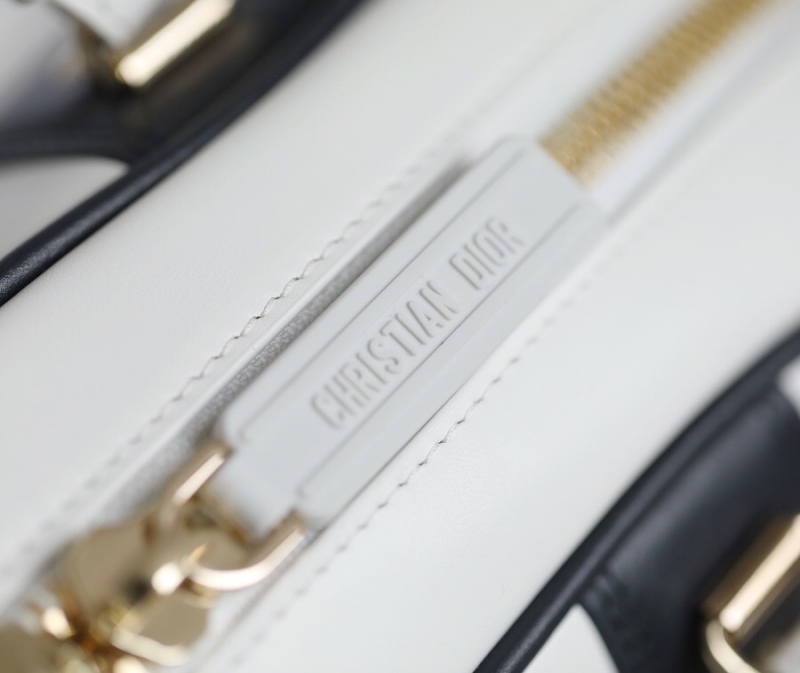 - M6202 迪奥DIOR VIBE BOWLING 拉链手袋中号 光滑牛皮保龄球包 白色