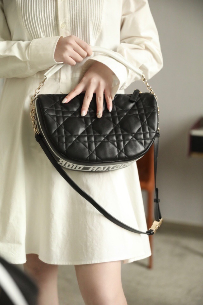 - M7201 迪奥DIOR VIBE HOBO 手袋中号 羊皮藤格纹饺子包 黑色
