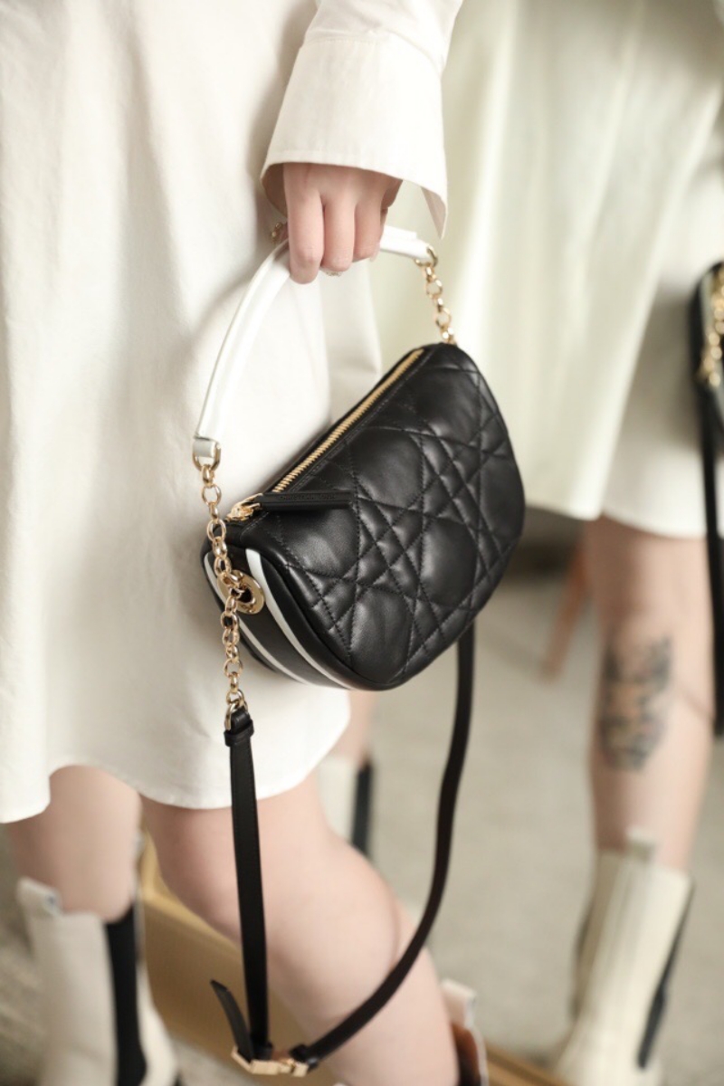 - M7200 迪奥DIOR VIBE HOBO 手袋小号 羊皮藤格纹饺子包 黑色
