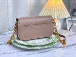- 结构:翻盖开合 CD 扣环 背面 30 Montaigne 压花标志 可调节肩带,链条部分由金色饰面金属和与皮革同色调的珐琅 CD 链环组成,搭配皮革带 三隔层 内含防尘袋