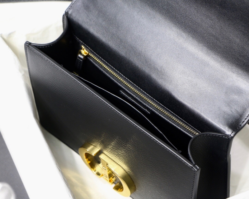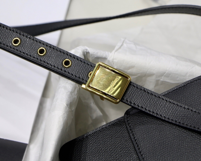 - 结构:金色金属配饰 可调节皮革肩背带 后侧点缀30 Montaigne立体压印字样 后口袋 可手提亦可肩背或斜挎