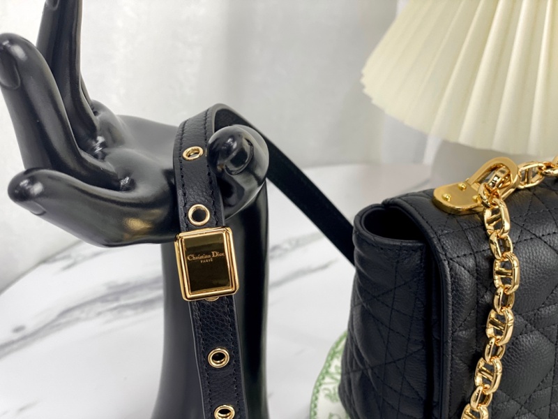 - 结构:翻盖开合搭配旋钮式 CD 扣环 背面 30 Montaigne 压花标志 可拆卸、可调节的 CD 链环肩带,搭配军装风格的 Christian Dior 搭扣 2 个可拆卸链环搭配 X 形中间凹口设计,便于打开链条 内部拉链口袋和贴袋 后侧口袋 可随心搭配其他刺绣肩带 内含防尘袋