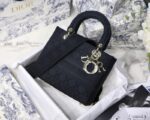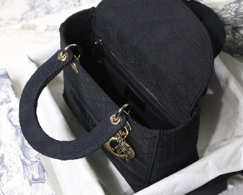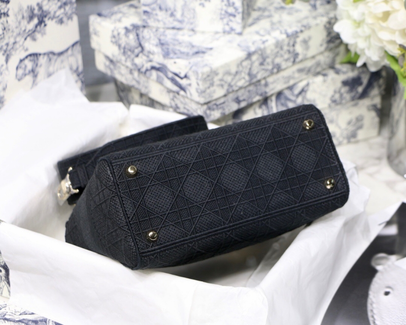 - M0565 迪奥Dior 中号 Lady D-Lite 手袋 藤格纹刺绣 黑色