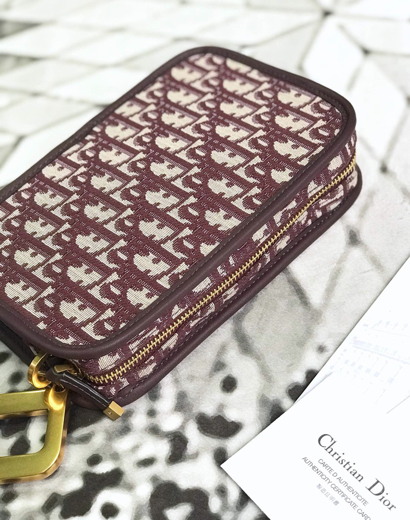 - S5700CTZQ Diorquake Dior Oblique酒红色提花帆布皮夹 Dior手包 Dior手拿包 酒红色