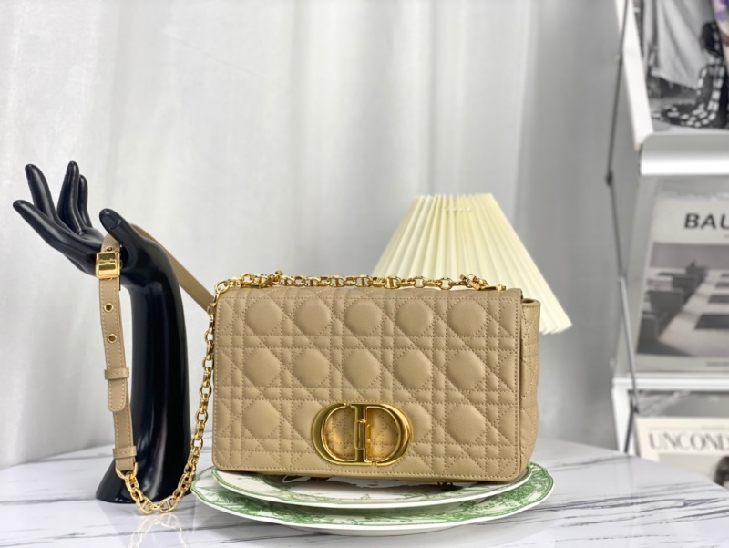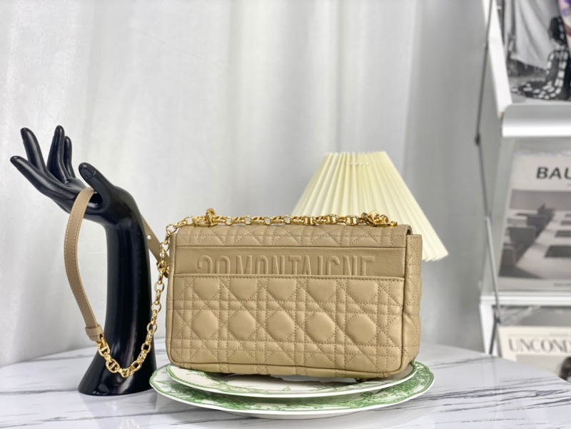 - 结构:翻盖开合搭配旋钮式 CD 扣环 背面 30 Montaigne 压花标志 可拆卸、可调节的 CD 链环肩带,搭配军装风格的 Christian Dior 搭扣 2 个可拆卸链环搭配 X 形中间凹口设计,便于打开链条 内部拉链口袋和贴袋 后侧口袋 可随心搭配其他刺绣肩带 内含防尘袋