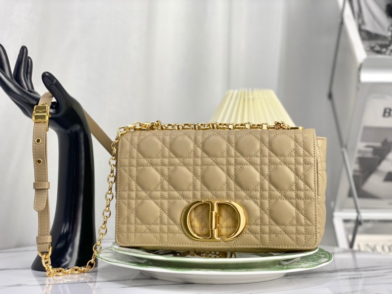 - 详细介绍:这款 Dior Caro 手袋结合典雅气质与现代风范。采用焦糖米色牛皮革精心制作,以藤格纹缉面线打造绗缝细节。材质柔软,翻盖饰以复古金色饰面金属旋钮式 CD 扣环,灵感源自 Christian Dior 香水瓶的封口。中号款式,搭配可拆卸的 CD 链环肩带,可手提或肩背,亦可替换成刺绣宽肩带,点缀日常造型或为晚装亮丽点睛。