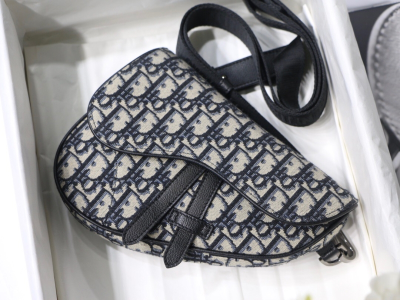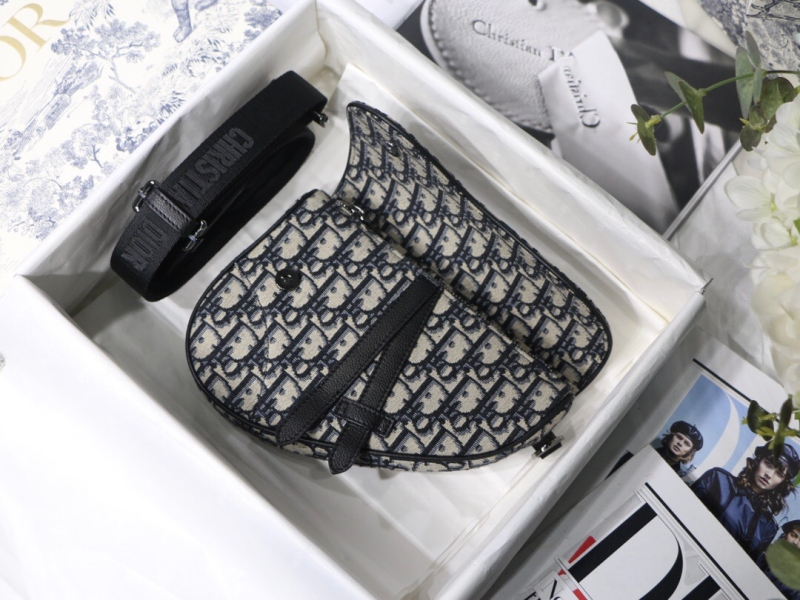 • 1ADPO Dior 迪奥迷你马鞍包 米色和黑色 Oblique 印花