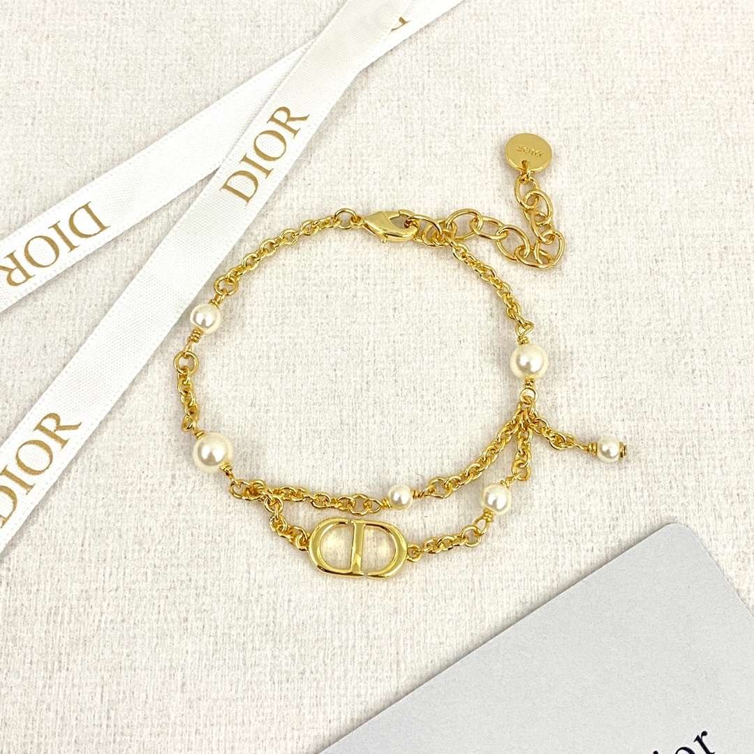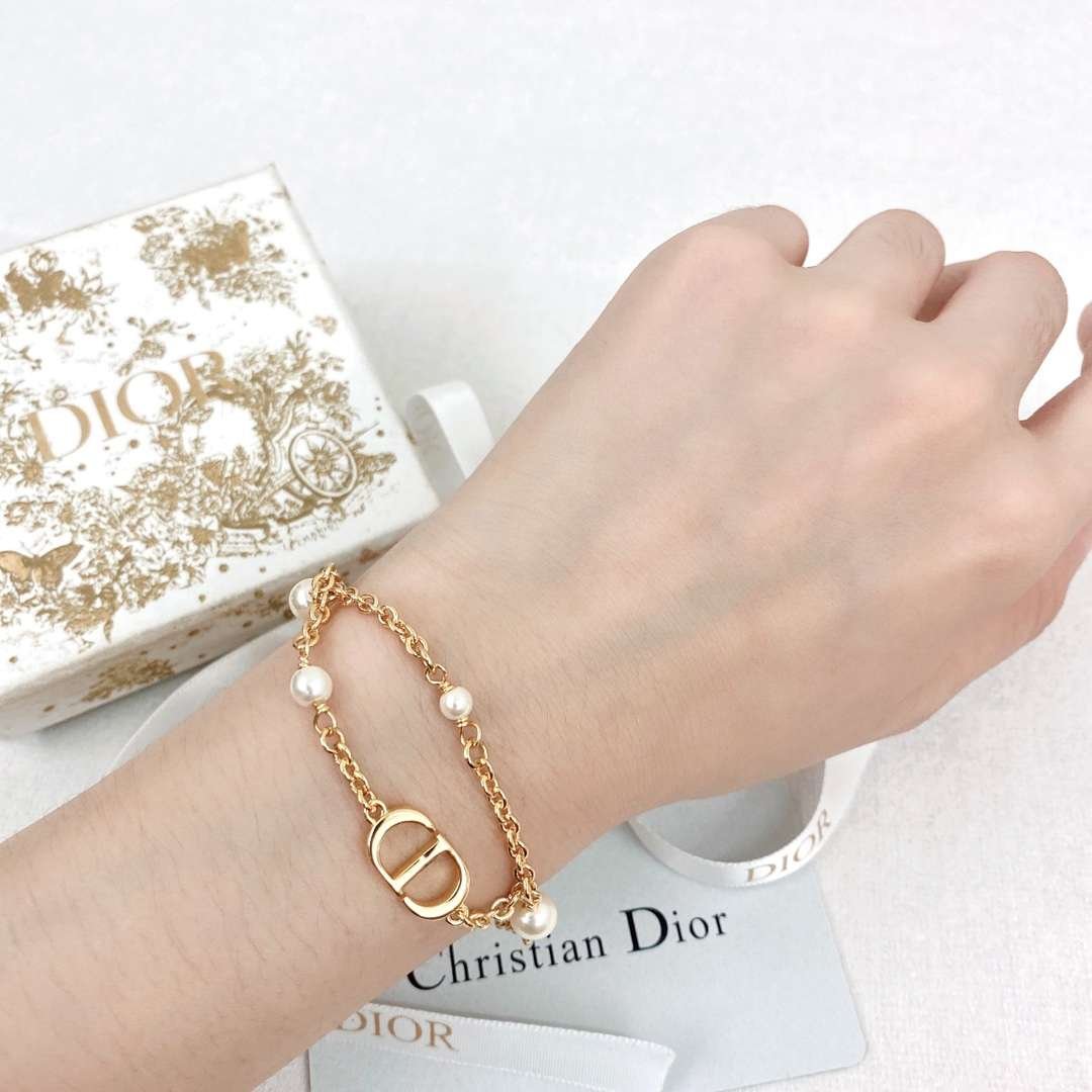 Dior CD 双流苏珍珠手链金色