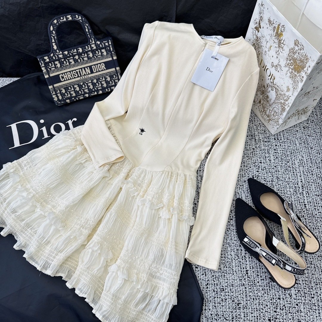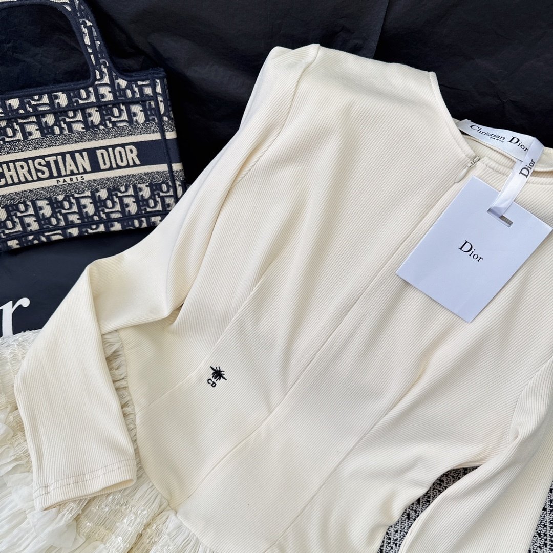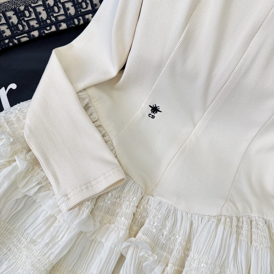 Dior 女士白色钩编蕾丝迷你连衣裙