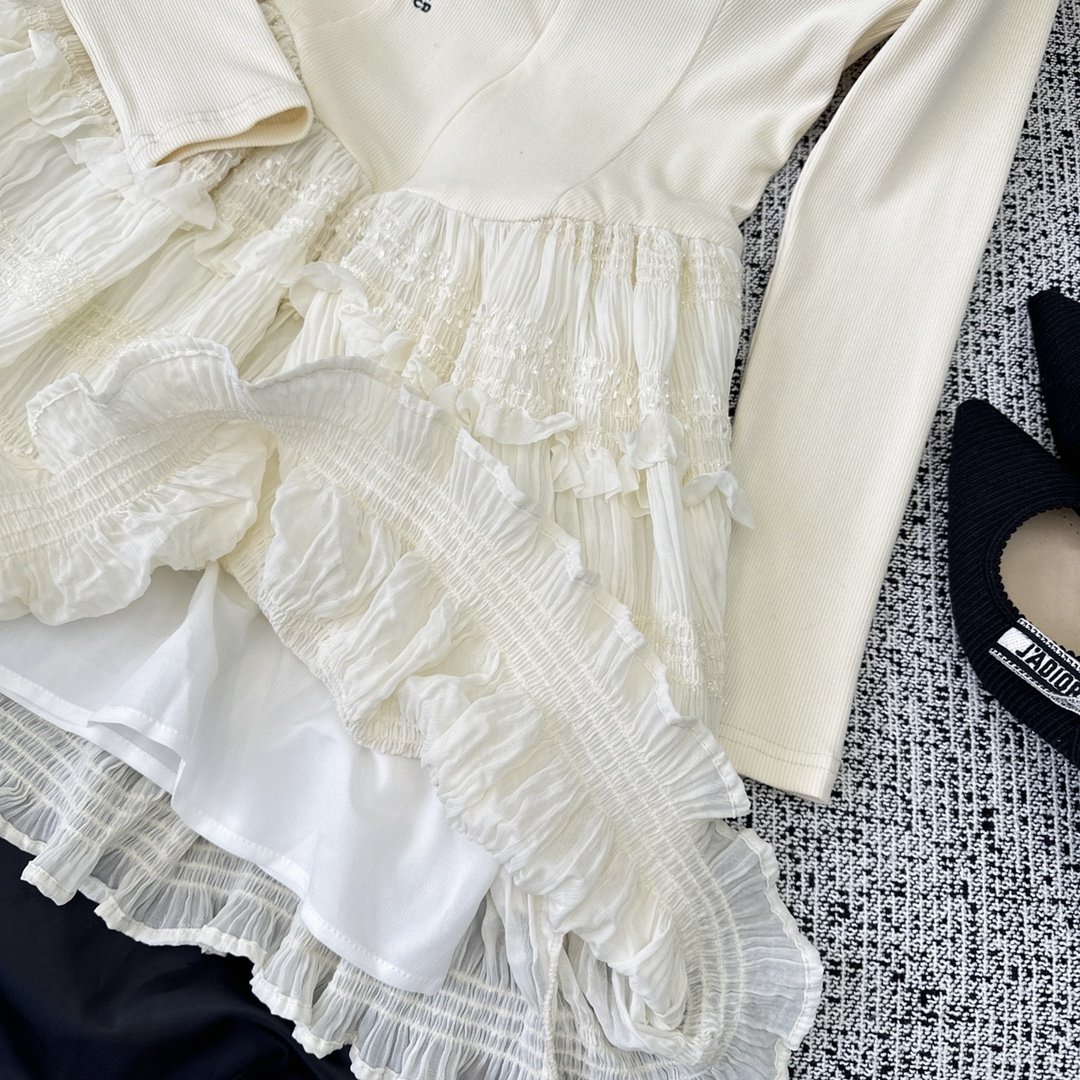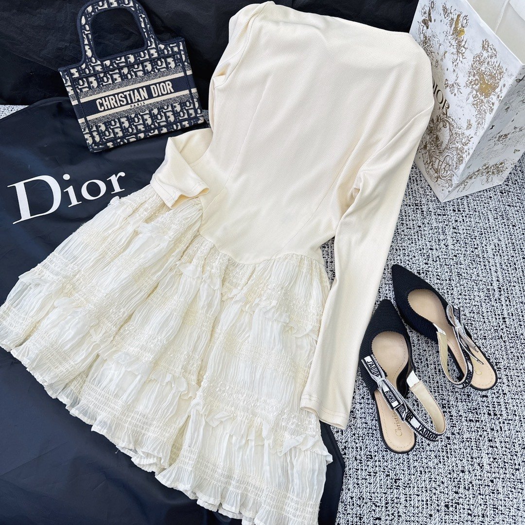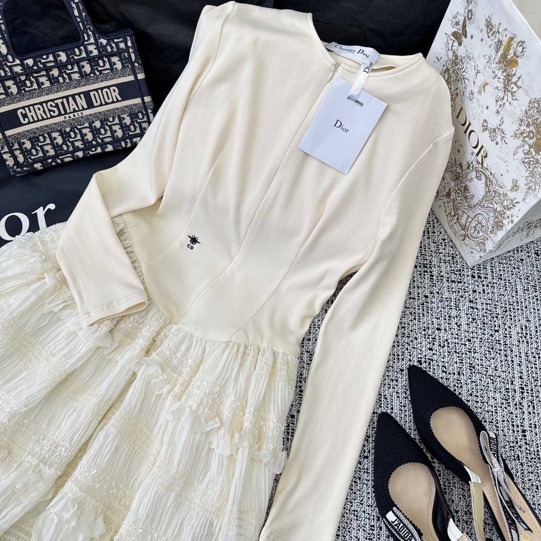 Dior 女士白色钩编蕾丝迷你连衣裙