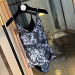 这款连体泳衣属于 Dioriviera 胶囊系列,采用 Toile de Jouy Reverse 图案,这是品牌标志性图案的一种变体,带有戏剧效果在相反的颜色上。采用灰色和粉色技术面料制成,V 领和交叉背带的设计与众不同。这款泳衣可与其他 Dioriviera 作品搭配,打造完美造型。