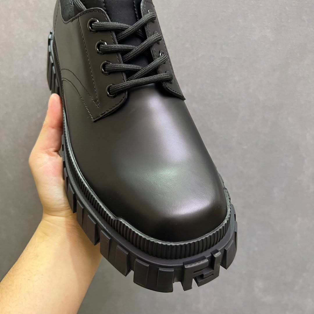 Fendi Force 系带靴。衣领修剪。轻质橡胶鞋底,后跟处有浮雕 FF 细节。