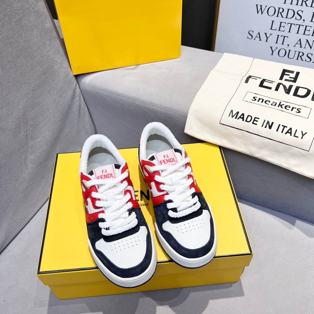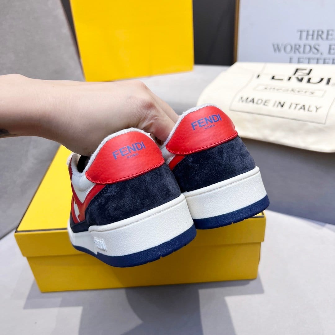FD Fendi Match 低帮运动鞋鞋舌上饰有复古标签,设计紧凑。侧面缝有 FF 图案,鞋底压纹 Fendi 字样。饰有同色系衣领和鞋带。带保险杠的包覆橡胶鞋底。