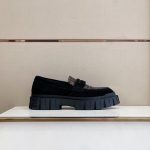 乐福鞋采用可见缝合鞋围,鞋面饰有 Fendi OLock 细节。黑色正绒面革制成。黑色和灰色提花 FF 面料鞋围。同色系珐琅金属配件。压纹橡胶鞋底。
