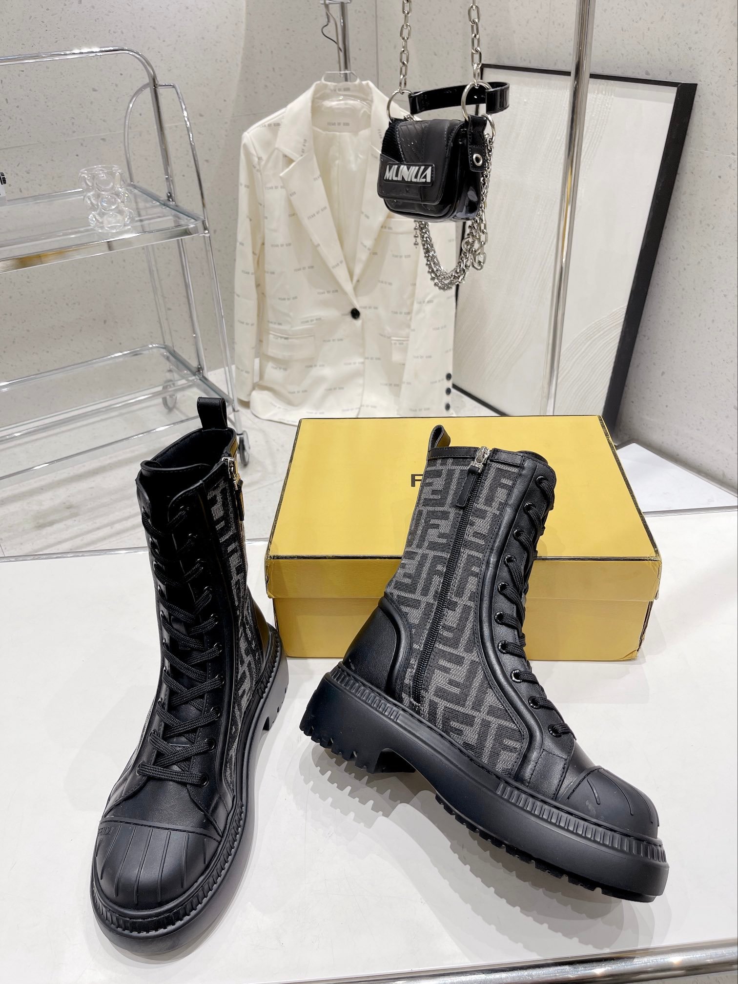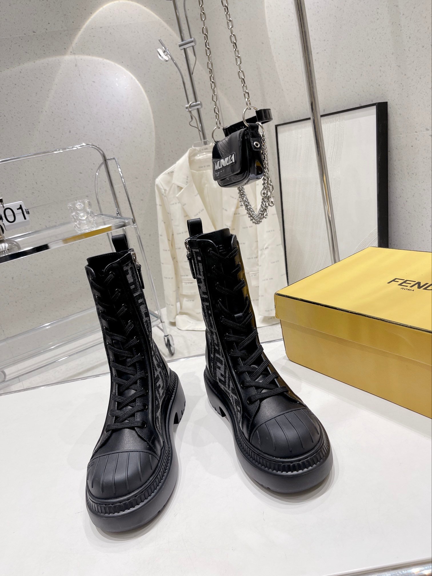 Fendi FD Rockoko 作战靴黑色 – 8T6780A8C7F1D0I