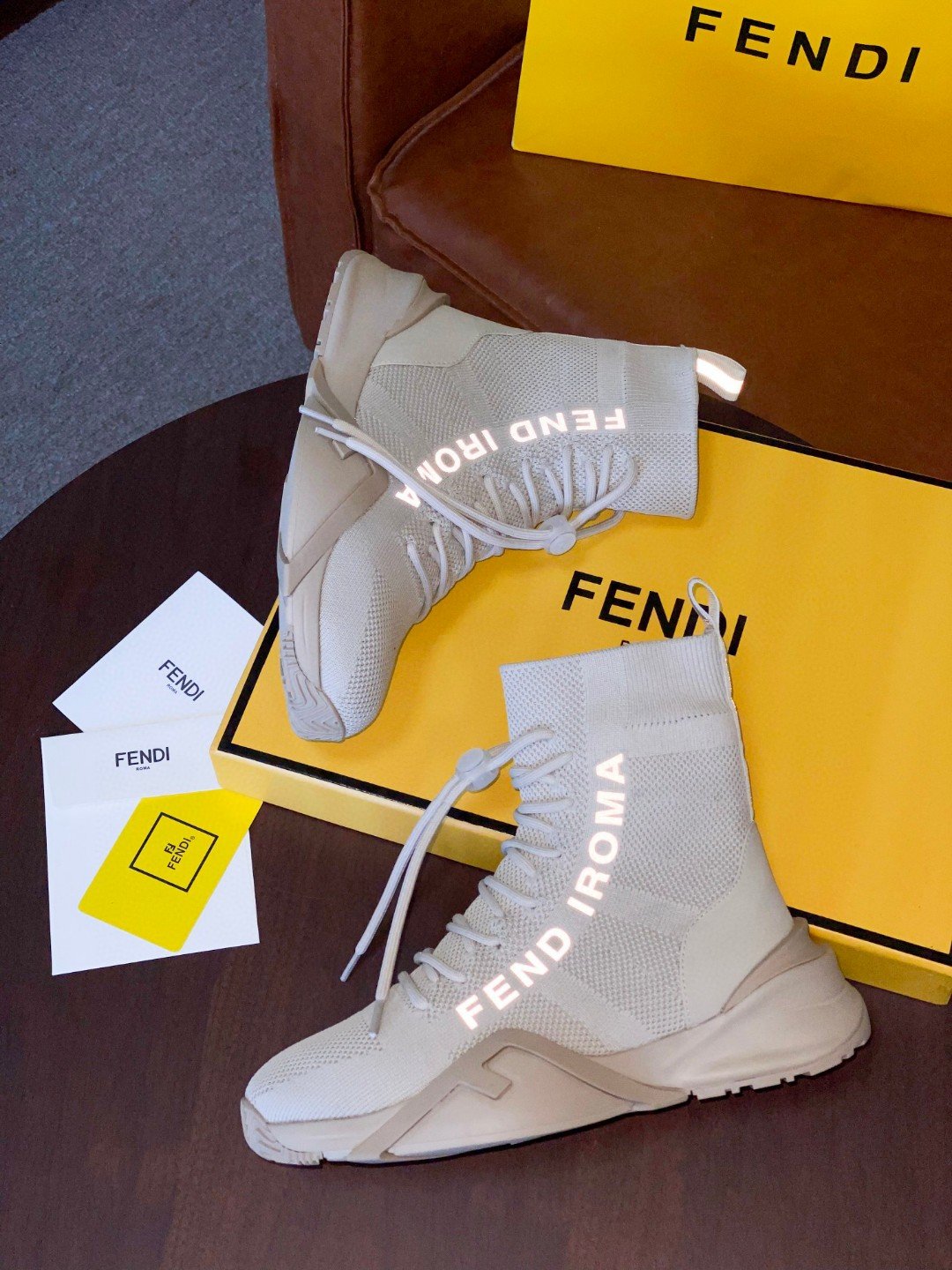 Fendi 女式高帮运动鞋米色