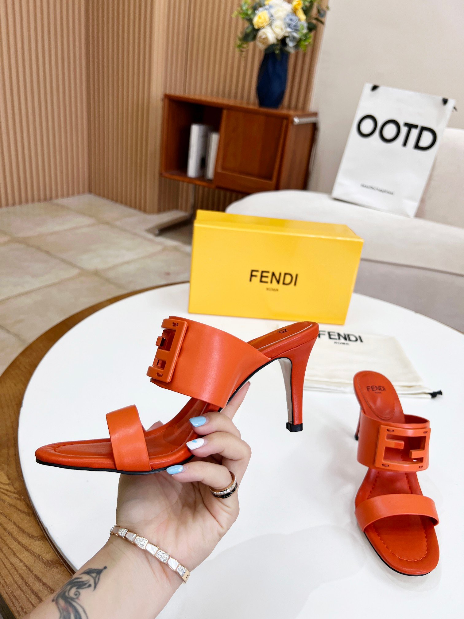 Fendi 女式长方形棕色高跟鞋 8R8287AE7TF1C4R