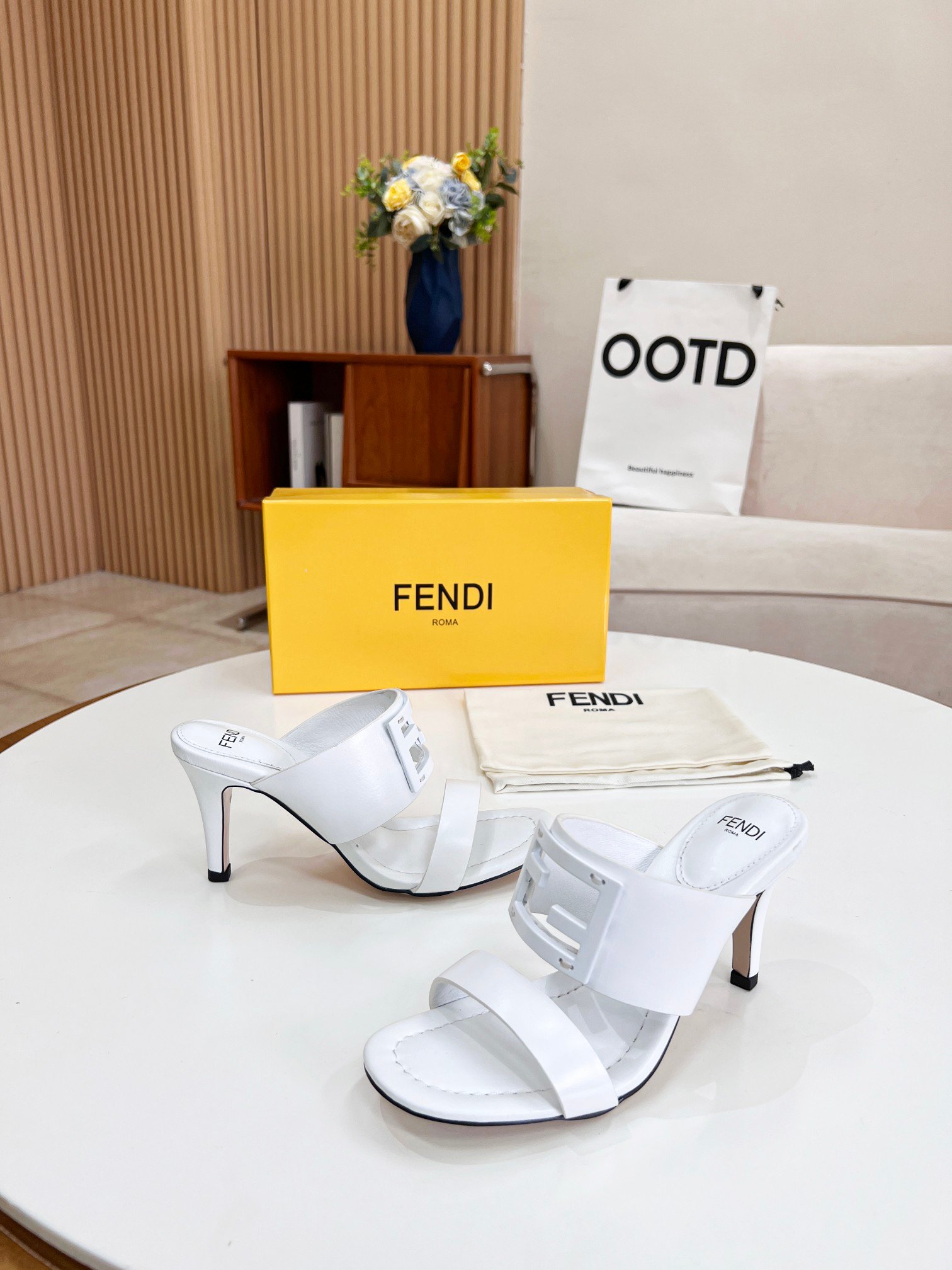Fendi 女式长方形白色高跟鞋