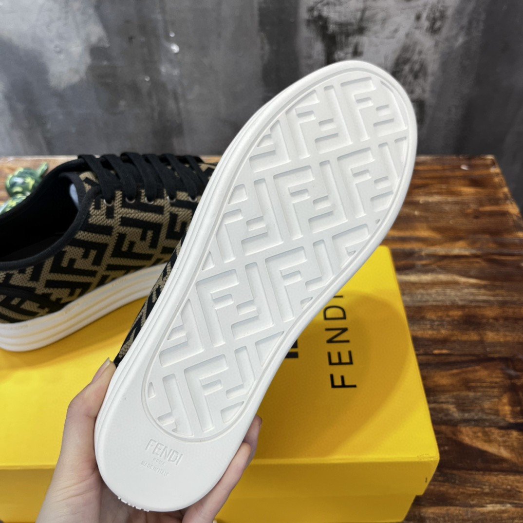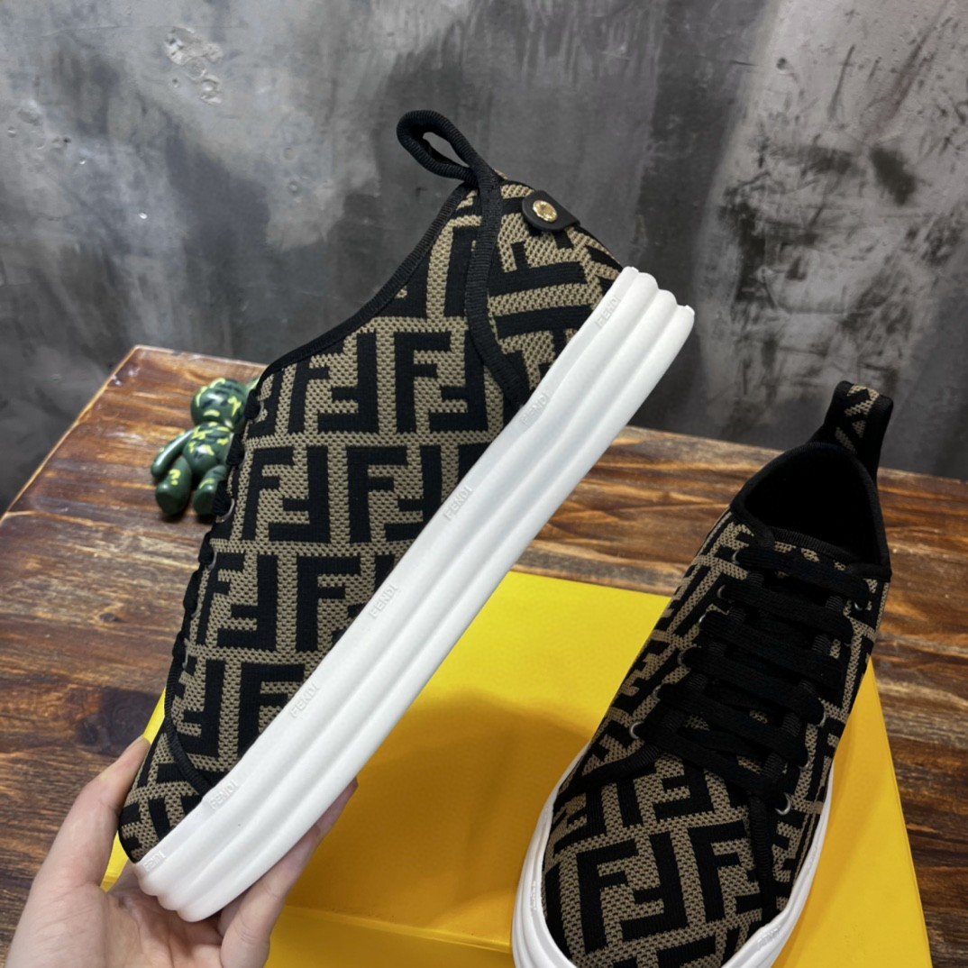 Fendi 男士多米诺织物运动鞋棕色