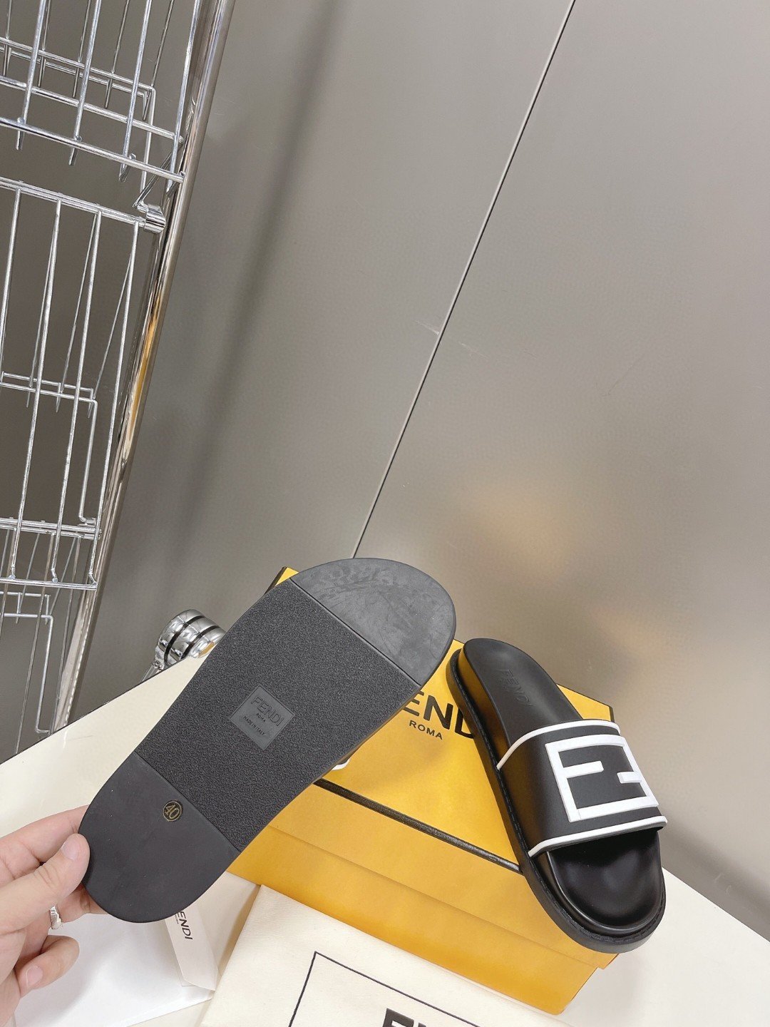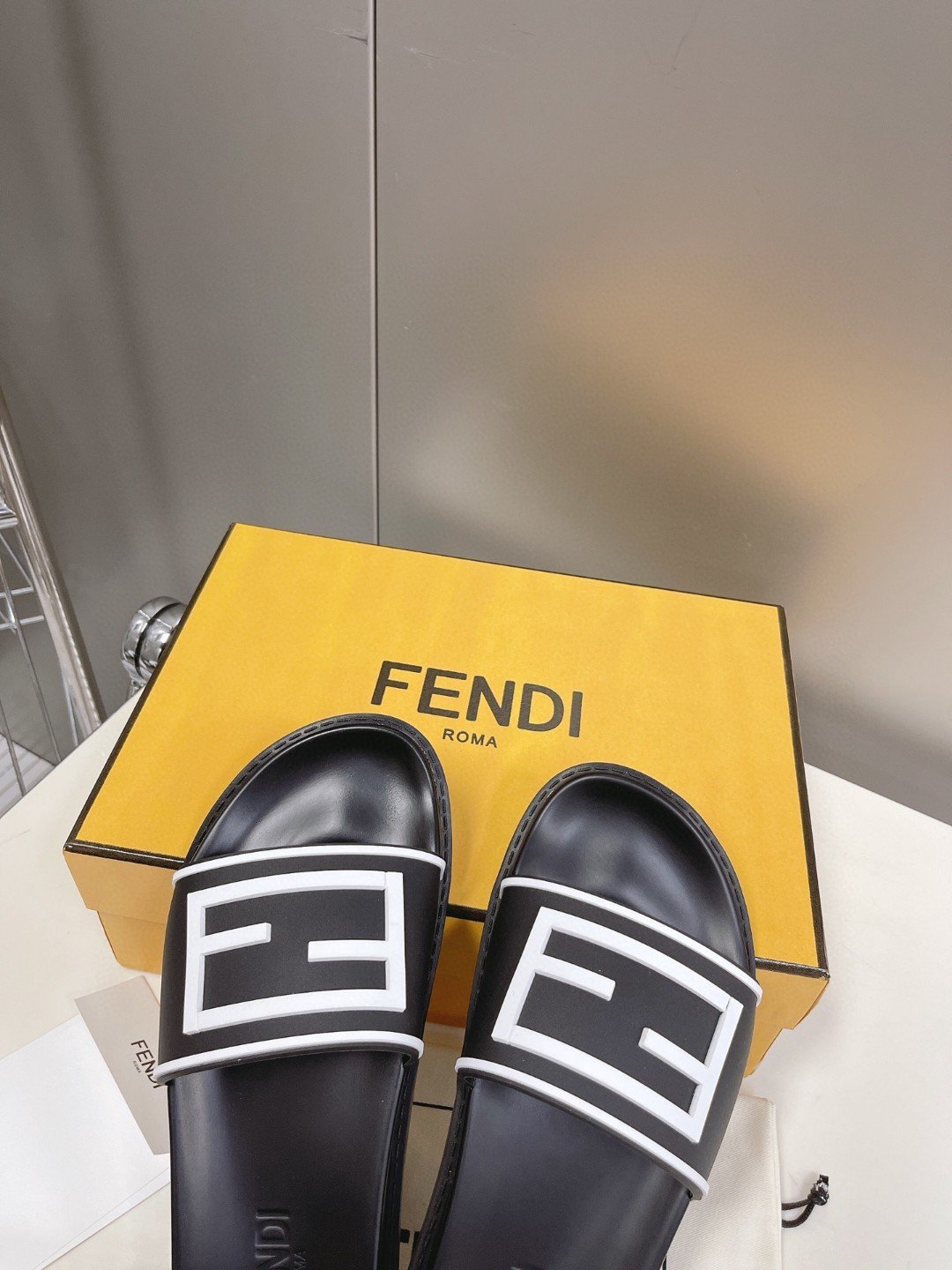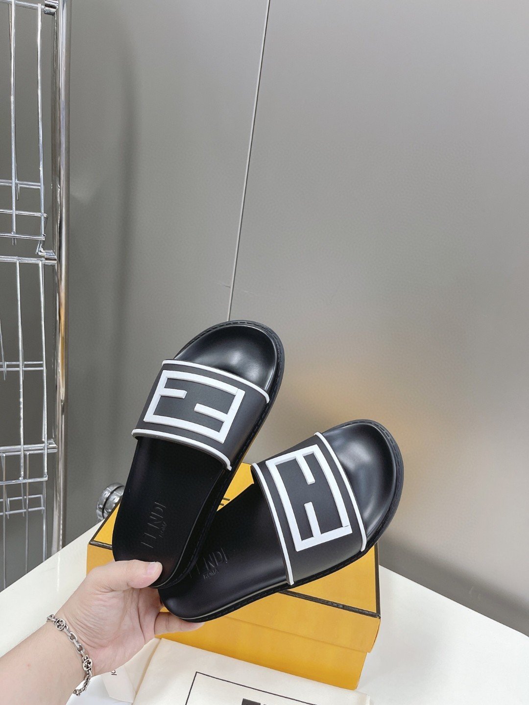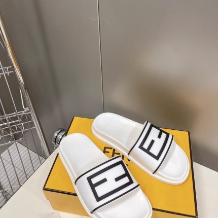 Fendi 男式长方形黑色拖鞋