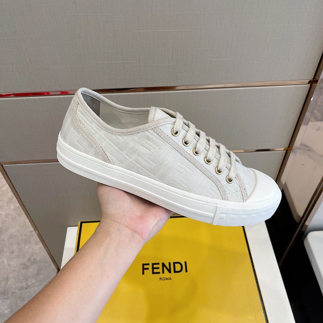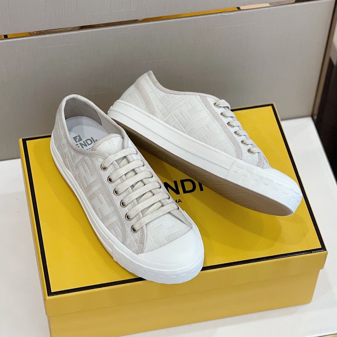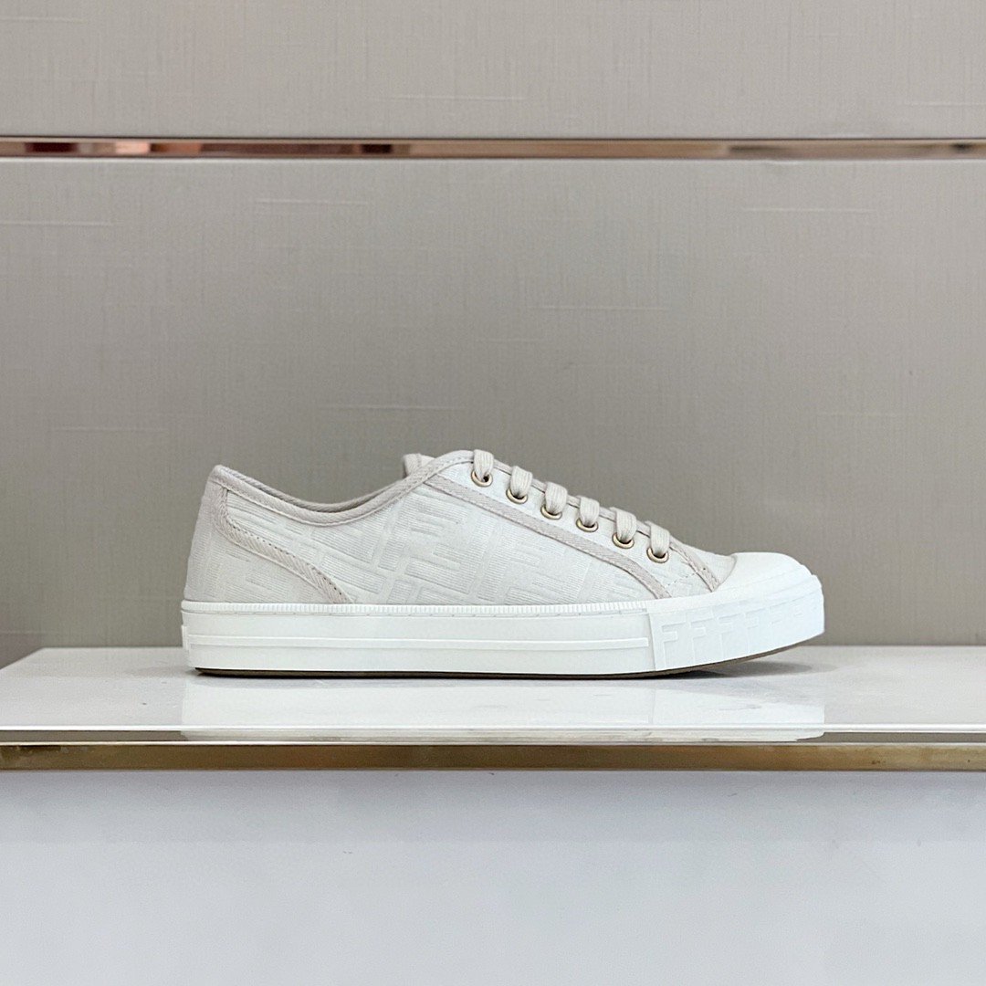 Fendi 男士多米诺织物运动鞋白色 7E1553