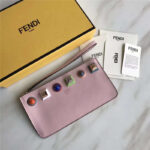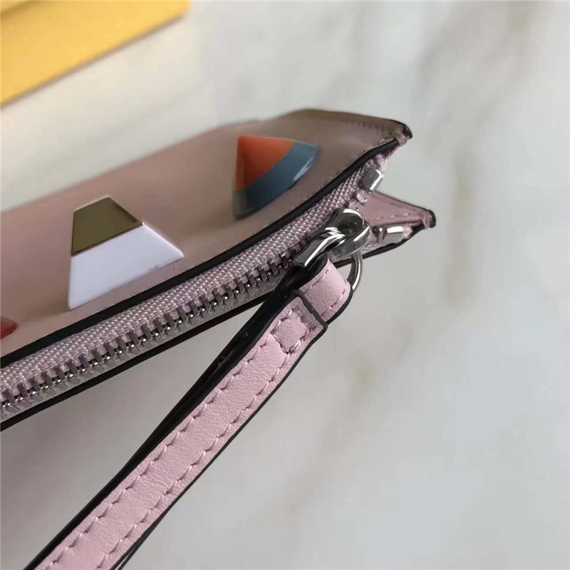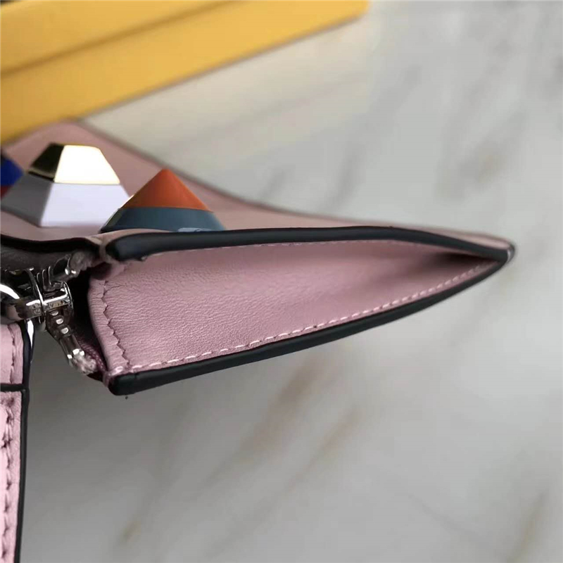 - FENDI 芬迪 1512 2017新款小牛皮铆钉装饰纤薄拉链零钱包 樱花粉