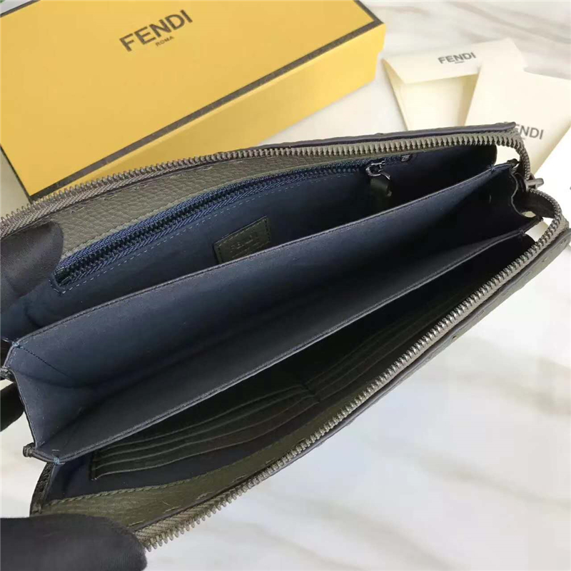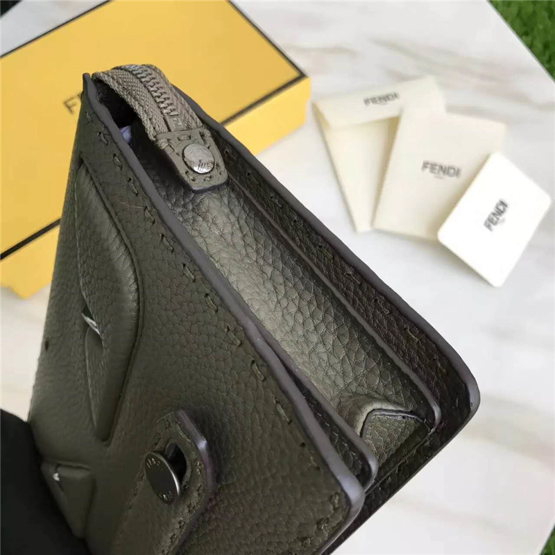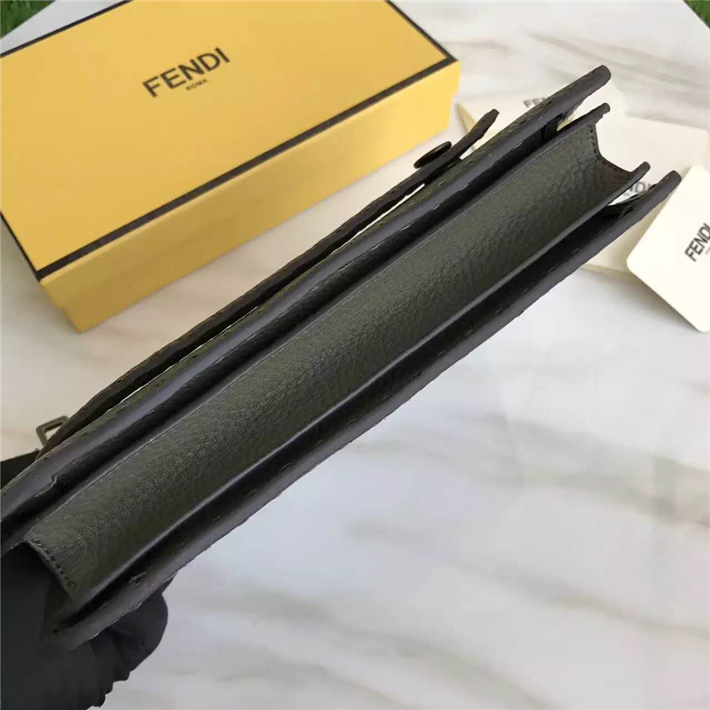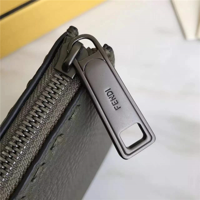 - FENDI 芬迪 351 精选小牛皮荔枝纹小恶魔压制立体BAG BUGS眼睛手拿包 军绿色