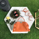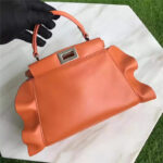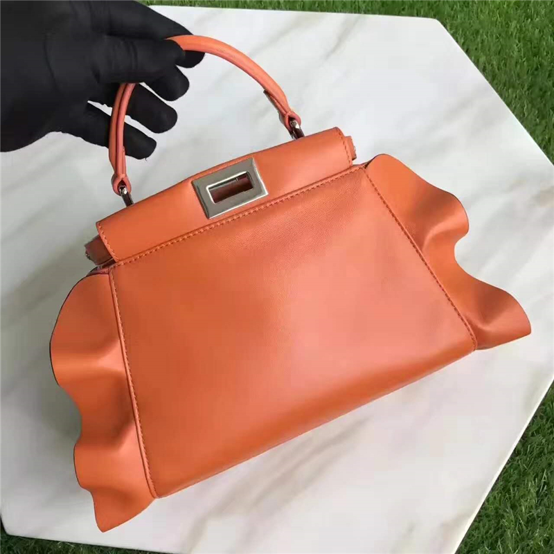 - FENDI 芬迪 8773 2107时装秀款 波纹荷叶边 小牛皮拼色 单肩手提包 橙色