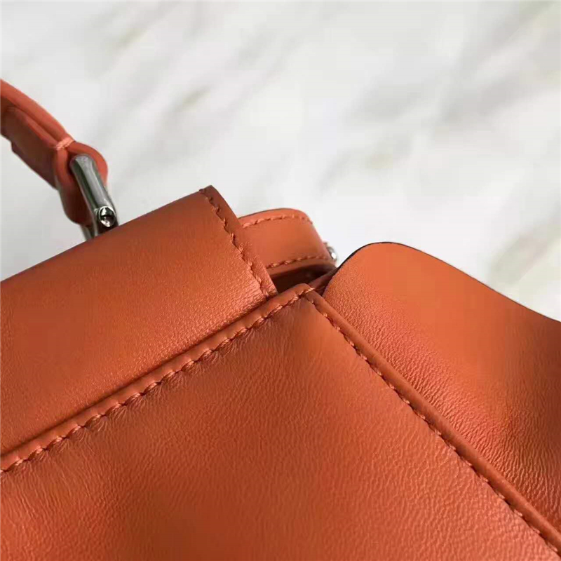 - 结构:硬质隔板分割成两个隔层,装饰同色系饰条和琢面索环。扭锁和镀钯金属配件。单提手和可调节可拆卸肩带。内侧拉链口袋