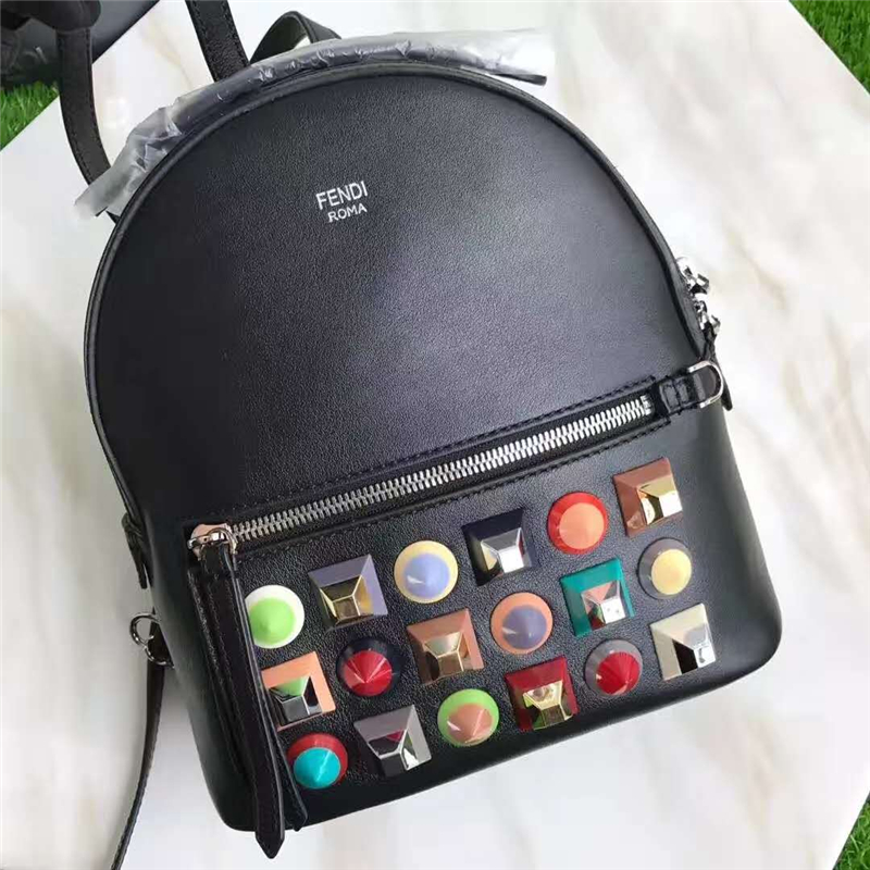 FENDI 2017新品 柔软南非小牛皮 彩色铆钉包 芬迪双肩包 黑色