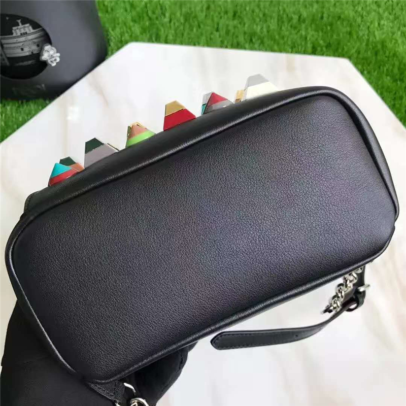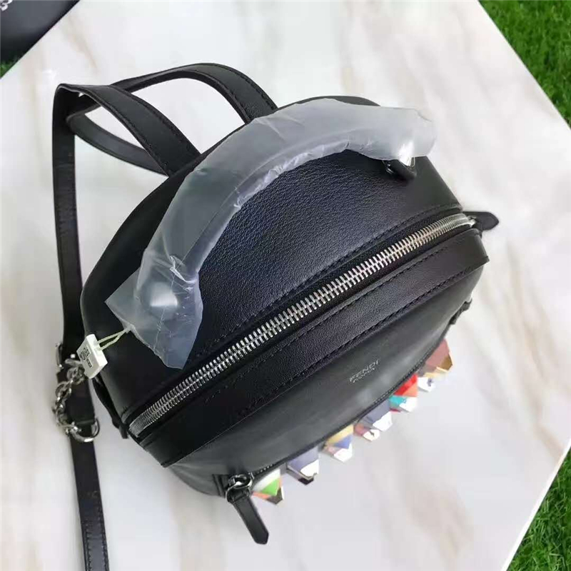 - FENDI 2017新品 柔软南非小牛皮 彩色铆钉包 芬迪双肩包 黑色
