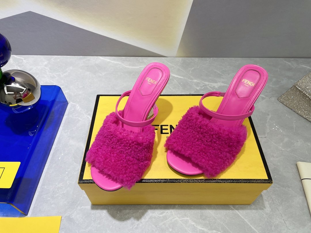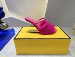 Fendi First 宽带和带子凉鞋。粉色羊皮材质。同色系细节。金色金属斜F形雕刻鞋跟。