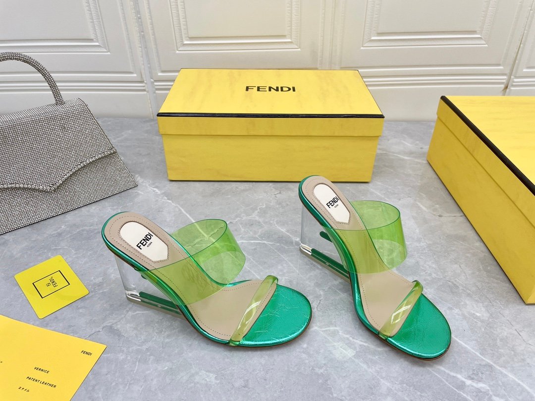 Fendi First 女式绿色透明高跟凉鞋