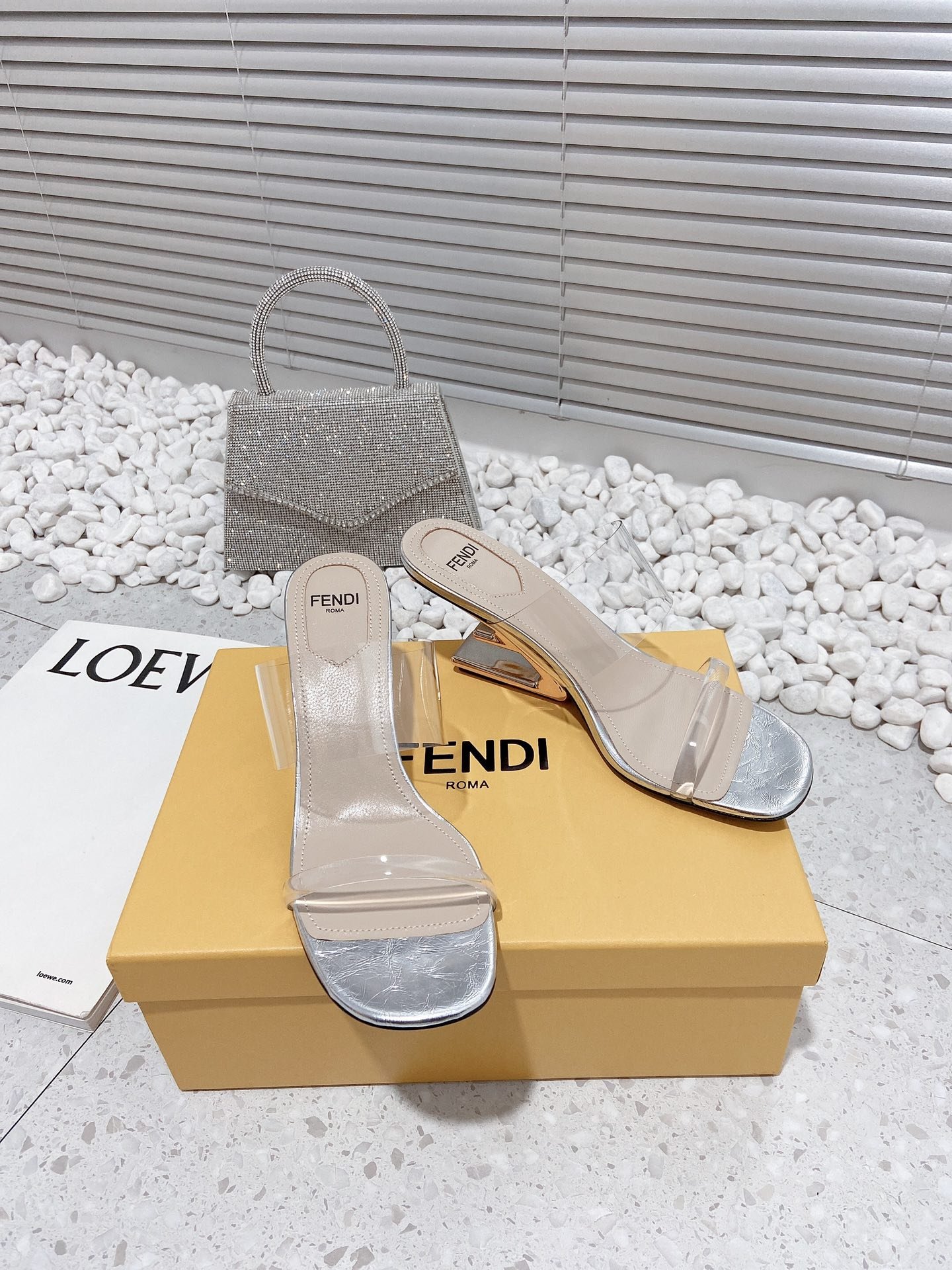 Fendi First 女式银色透明中跟凉鞋