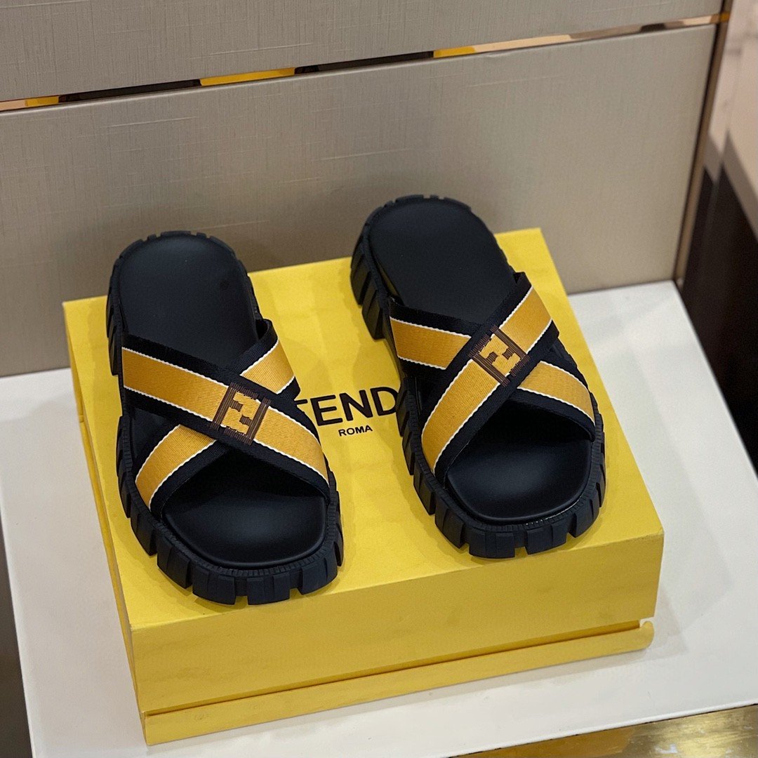 Fendi Force 男士橙色/黑色拖鞋