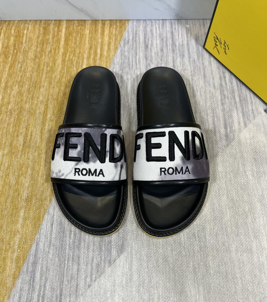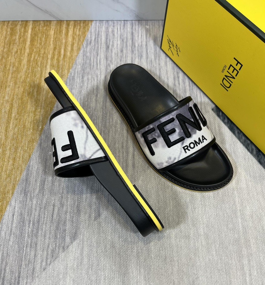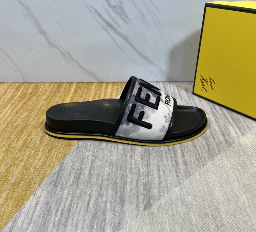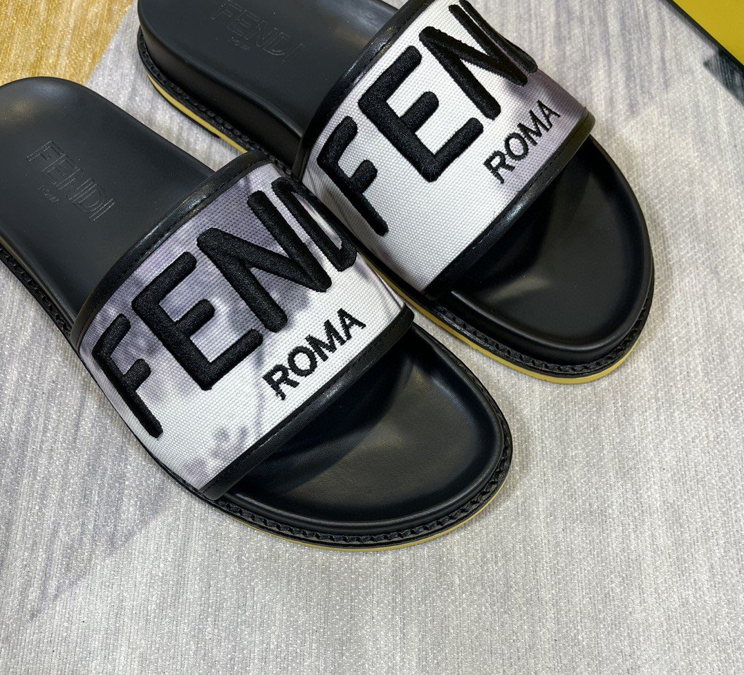 Fendi Force Roma 男士拖鞋混合白灰色