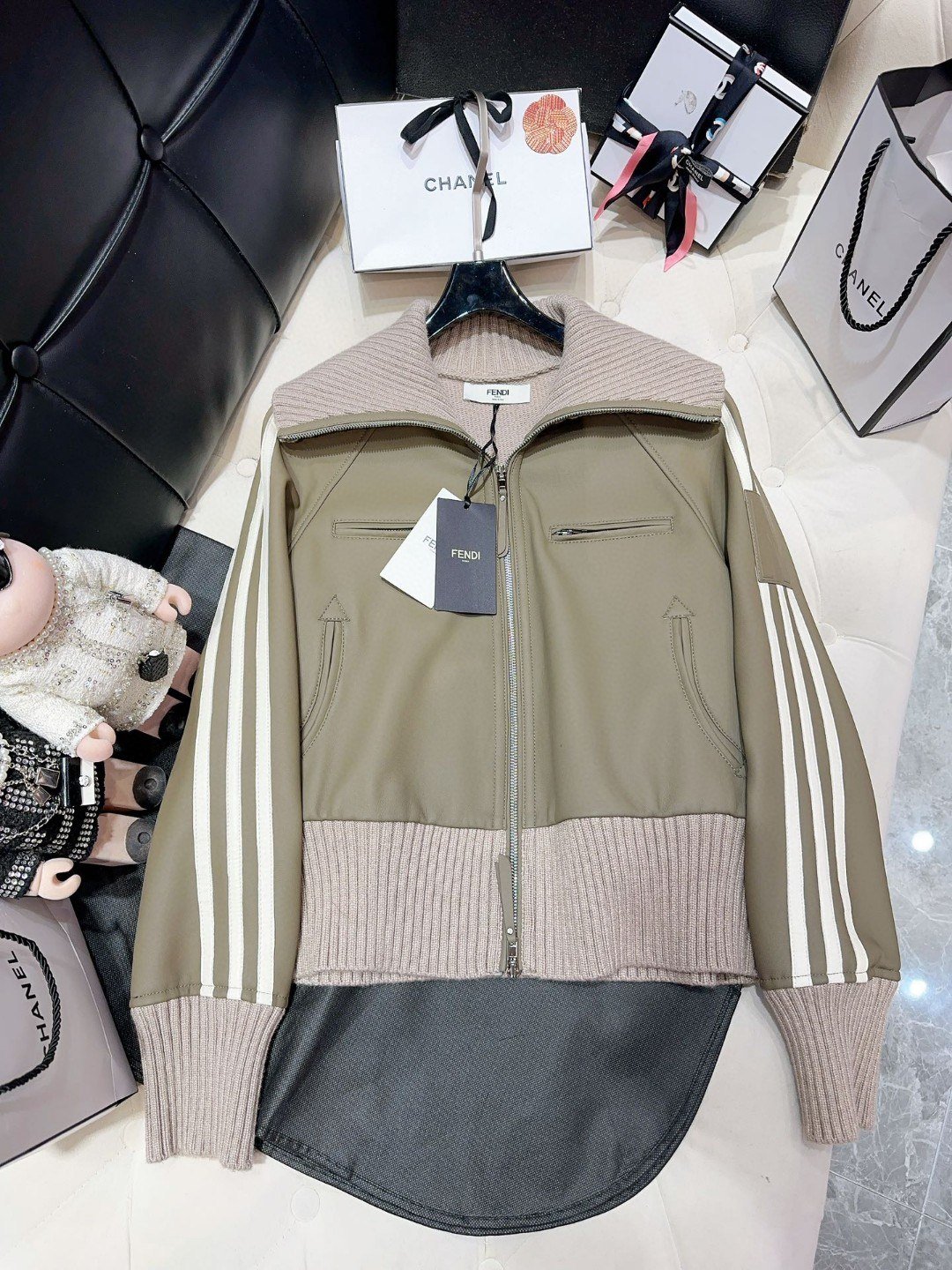 Fendi 女士高领夹克 绿色 卡其色