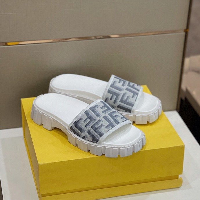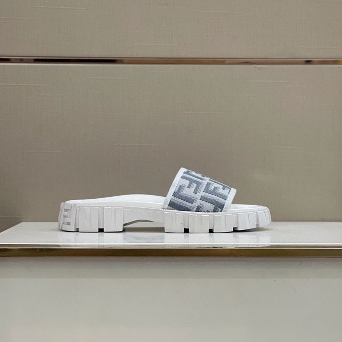 高带凉鞋。聚氨酯鞋床重量轻且极其灵活。防滑橡胶鞋底。由橡胶制成。具有混合纹理和浮雕 FF 图案。