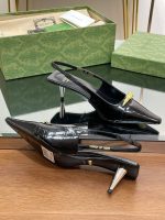 反映图案的历史起源。几十年来,设计硬件的金色调在每个系列中脱颖而出。在这里,这双中跟露跟高跟鞋呈现出现代风格,添加了以下元素。