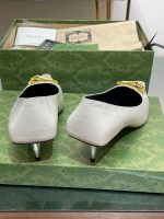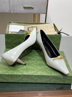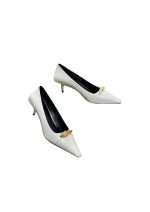 这双高跟鞋在经典廓形上进行了演绎,其特点是金属细高跟,营造出现代感。尖头完成设计。