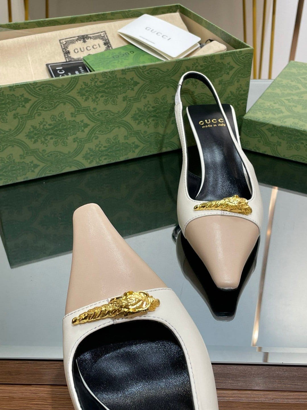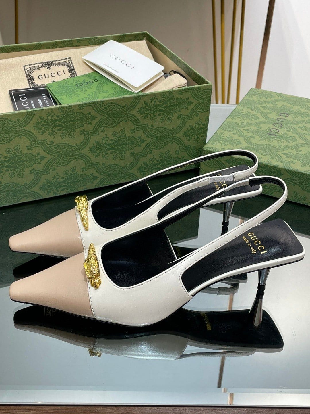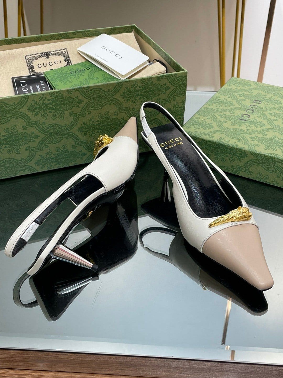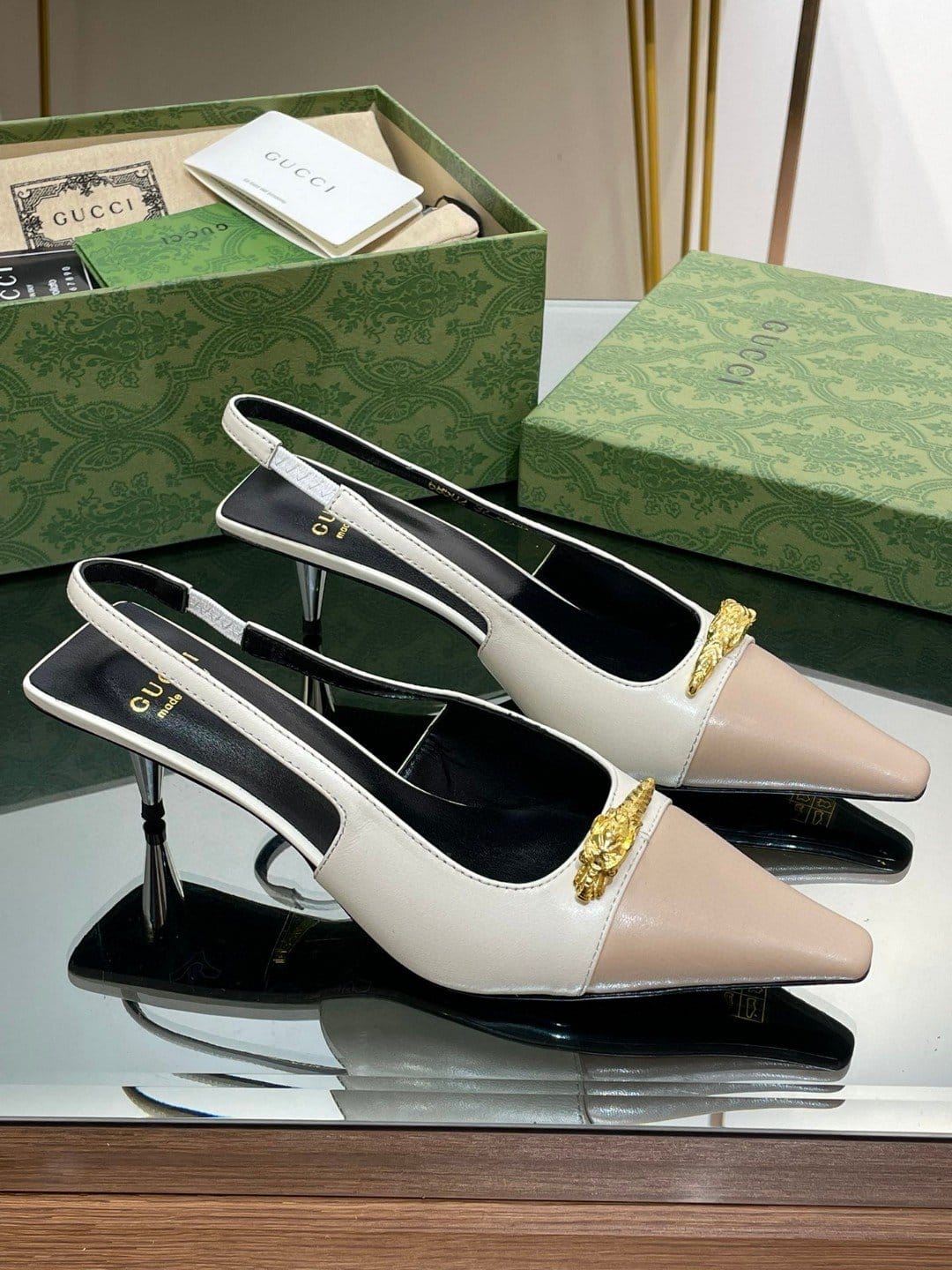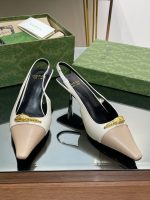 Gucci Gg 双色露跟中跟高跟鞋白色和米色