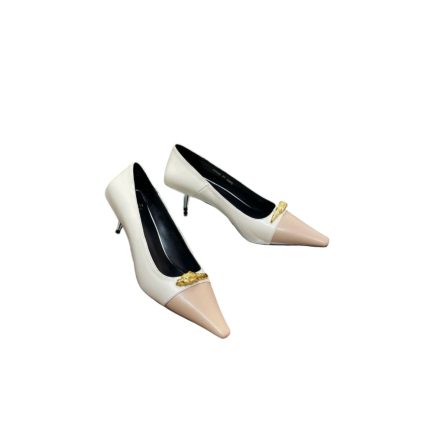 这双高跟鞋在经典廓形上进行了演绎,其特点是金属细高跟,营造出现代感。尖头完成设计。