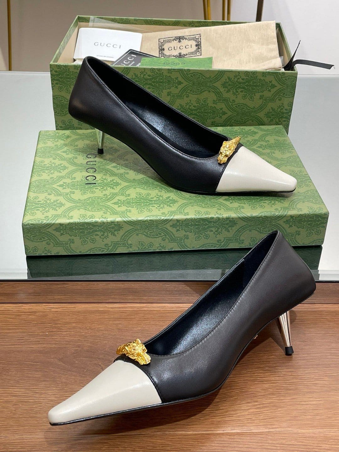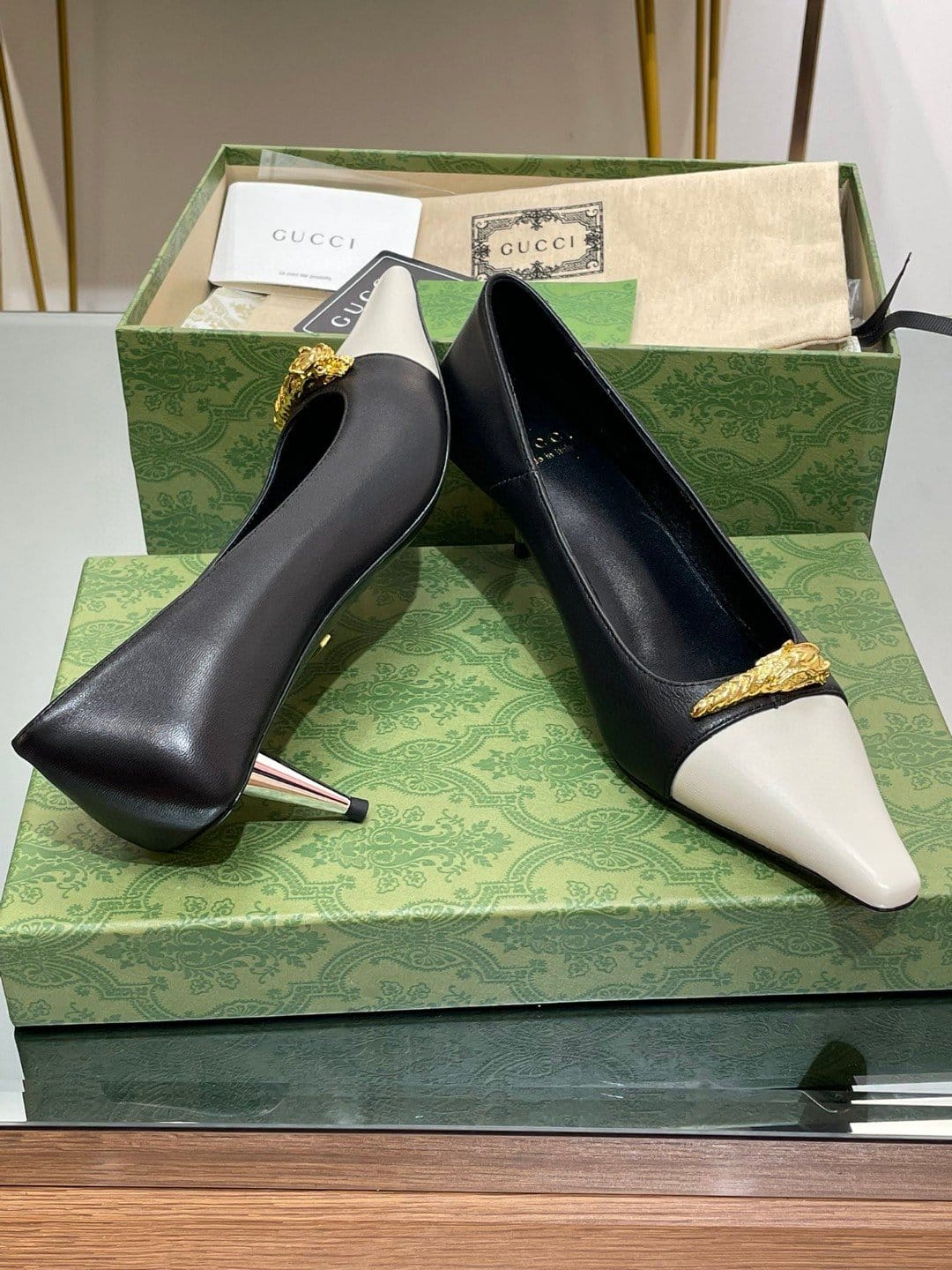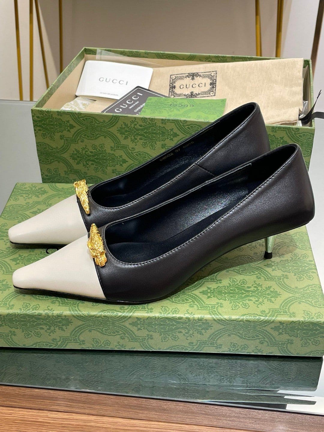 Gucci Gg 白色和黑色双色中跟高跟鞋