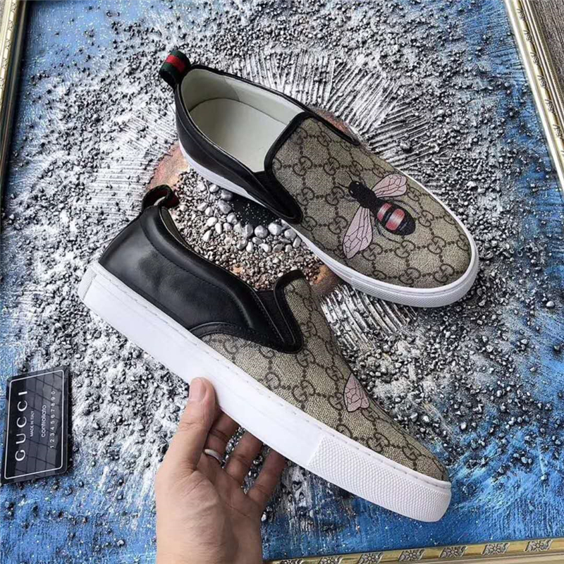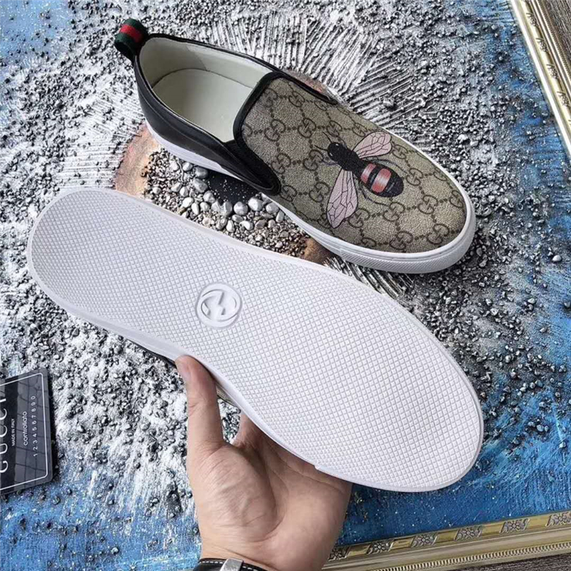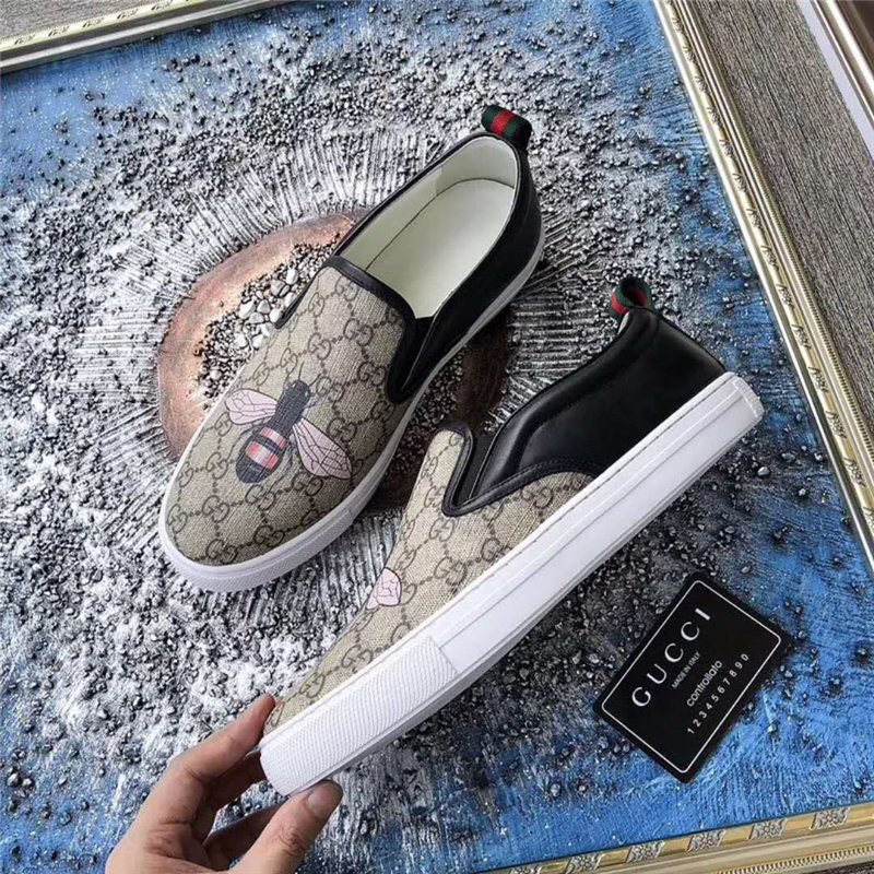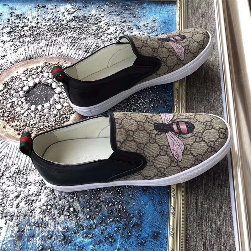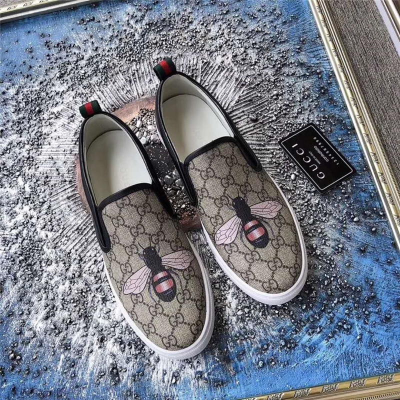 Gucci男鞋 古驰鞋子 进口牛皮 全手工 Gucci专用面料 蜜蜂印花
